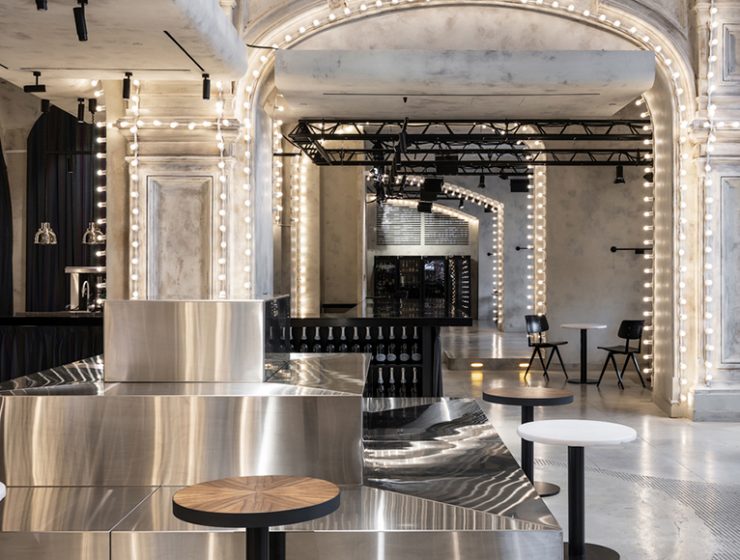 A Futuristic Interior Trend was developed by Sundukovy Sisters, at the Center of Moscow. Mishka Bar is highlighted with stainless steel reflective surfaces mixed with theatrical light bulbs, all…