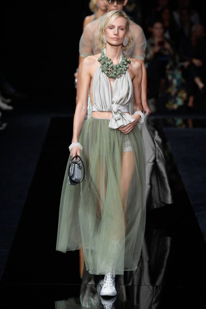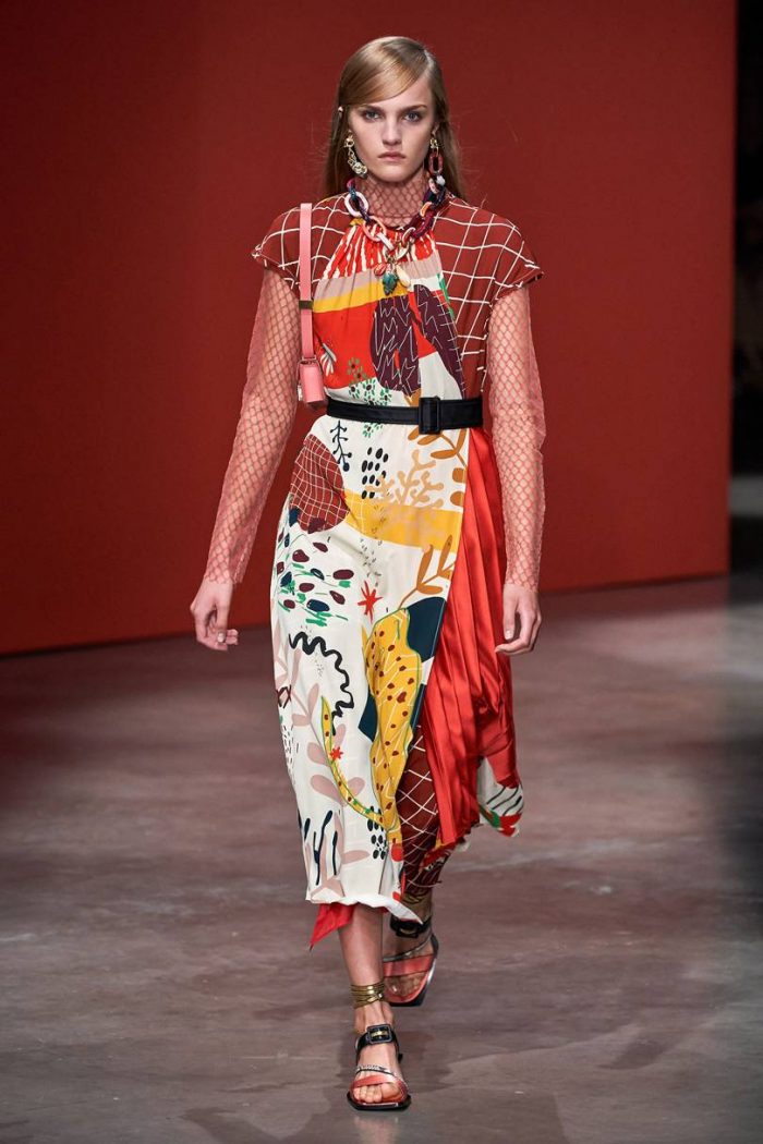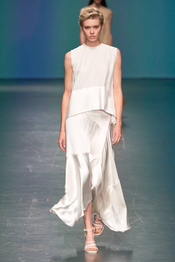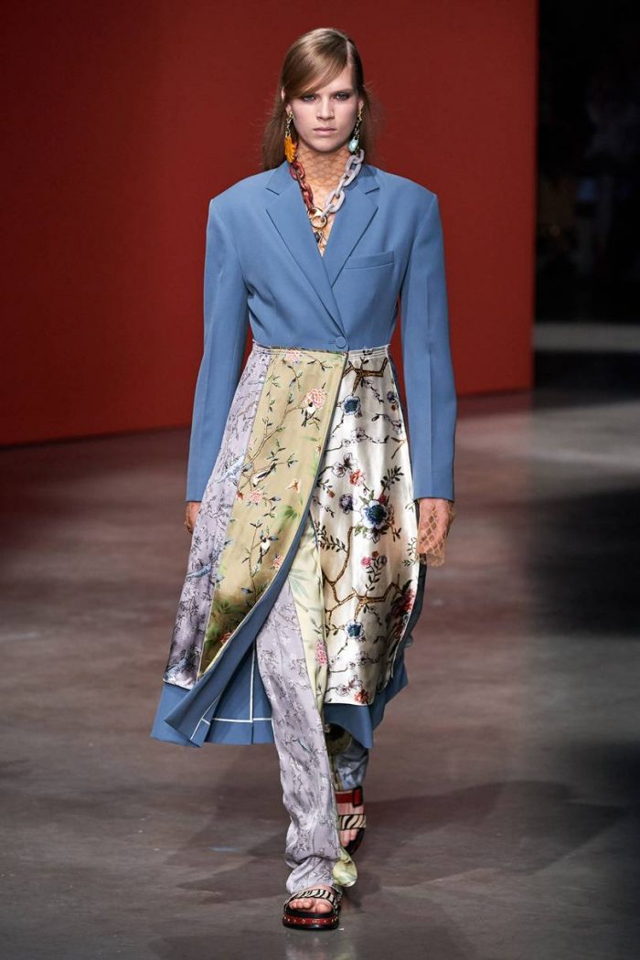 Ports 1961, as well, approaches this spring-summer 2020 collection trends, new shapes on classic trench coats. And also they accent their looks with silky scarfs.