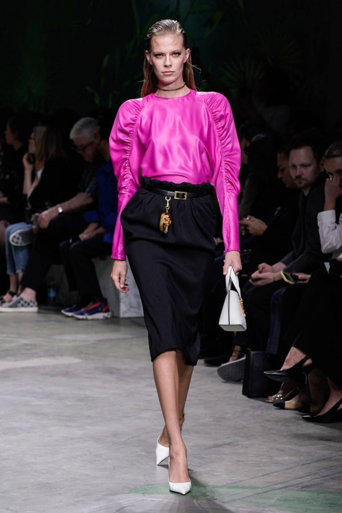 At Milan fashion week, the brand shows contemporary chic looks, with the usage of new materials, highlighting the transparency design trend on their ready-to-wear clothing.