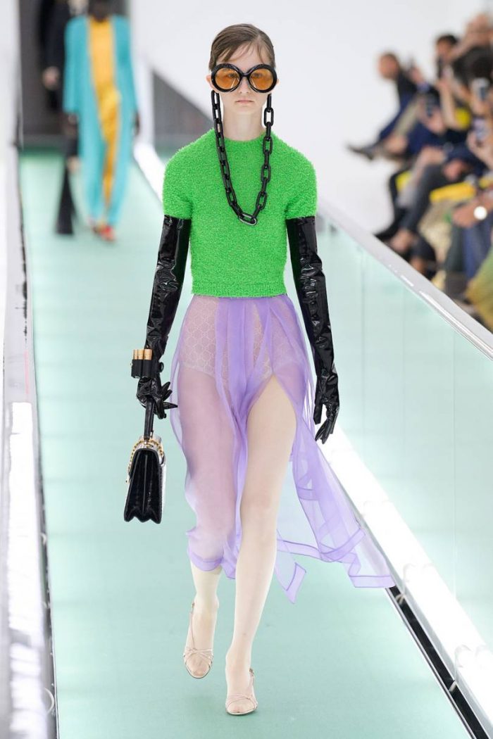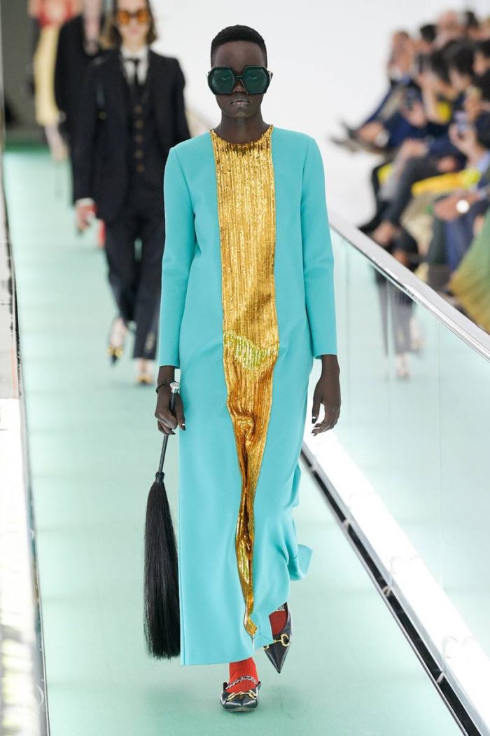 Prada shows it’s spring-summer 2020 collection, highlighting the design trend gold accents.