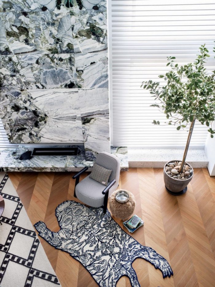 The design director chose to add furnishings from Loewe, Foscarini, Moustach, Roche Bobois, and Baxter.