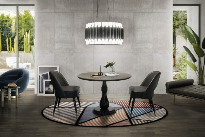 A round rug gives movement and life to a space because it doesn’t create limits of the space. A variety of tencel and wool pieces will add personality and a high-end vibe to any division.