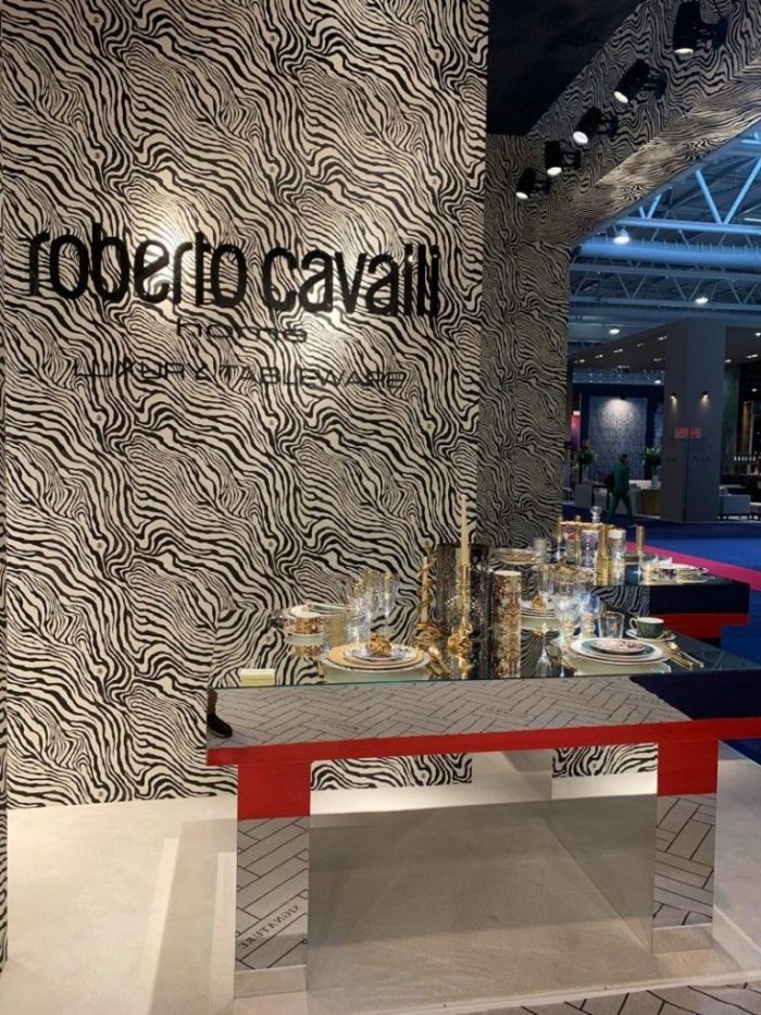 Drawing inspiration from the iconic prints and patterns of the clothing collections as bespoke animal prints and damask, Roberto Cavalli Home presented colors and textures featuring vibrant intertwining details.