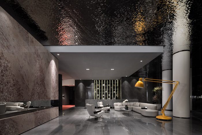 Silver hammered brass turning into water effect decoration. This unusual trend will have its growth to the calm feel of water. And a more effective way in incorporating the water element in any interior design project.